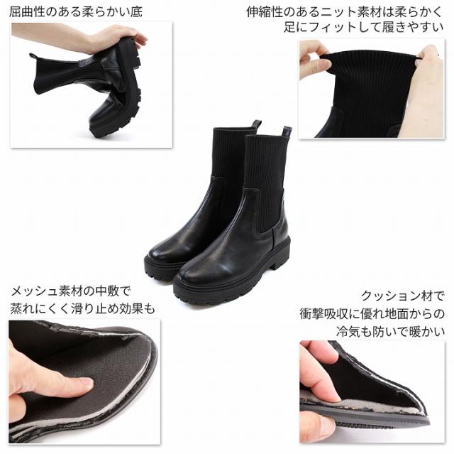 ブーツ レディースニットブーツ ミドル丈 ショートブーツ 厚底ブーツ 厚底 トラックソール ボリュームソール 柔らかい 履きやすい 大きいサイズ 小さいサイズ 歩きやすい 走れる 疲れない 走れる 防寒 オール 幅広 甲高 長時間 疲れない 外反母趾 22cm 22.5cm 23cm 23.5cm 24cm 24.5cm 25cm 25.5cm S M L LL かわいい 可愛い おしゃれ 秋 冬 秋冬 仕事 オフィス ビジネス お呼ばれ 20代 30代 40代 50代 旅行 帰省 レジャー ソックスブーツ 爆買