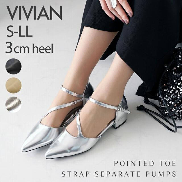 パンプス フラット 3cm ローヒール チャンキーヒール 太ヒール アンクル ストラップ セパレート ポインテッドトゥ キレイめ 大きいサイズ 小さいサイズ 歩きやすい 痛くない 走れる 疲れない ブラック 黒 シルバー メタリック ベージュ ママスーツ 結婚式 立ち仕事 20km歩けるパンプス オール 長時間 22cm 22.5cm 23cm 23.5cm 24cm 24.5cm 春 夏 秋 冬 春夏 秋冬 卒業式 卒園式 入学式 入園式 披露宴 仕事 オフィス ビジネス お呼ばれ 20代 30代 40代 50代 Minkyme Minky me