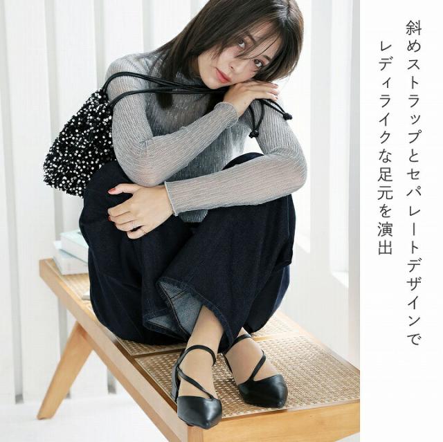 斜めストラップとセパレートデザインでレディライクな足元を演出