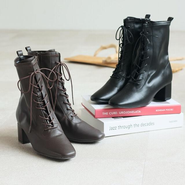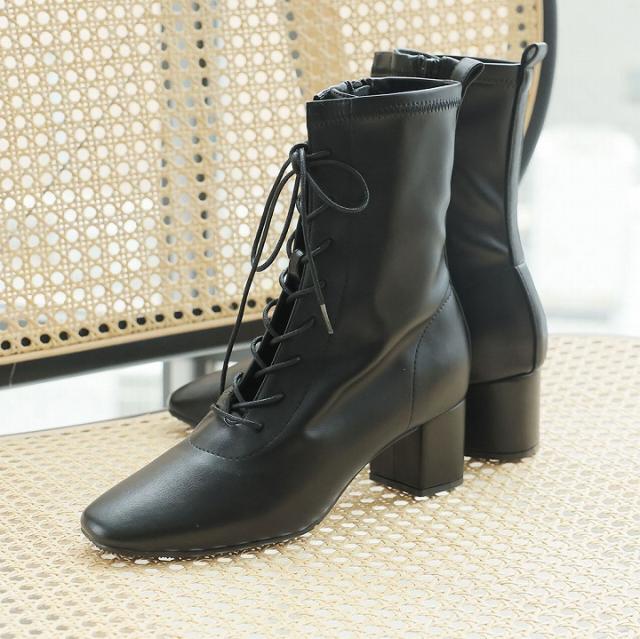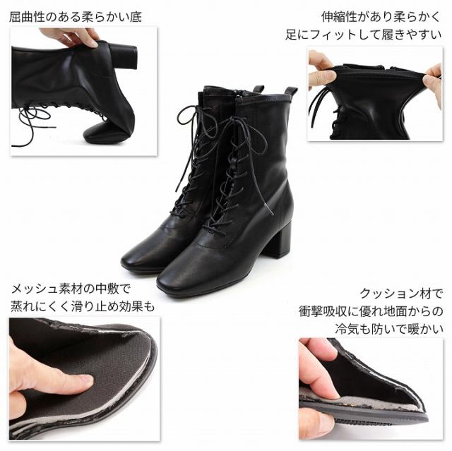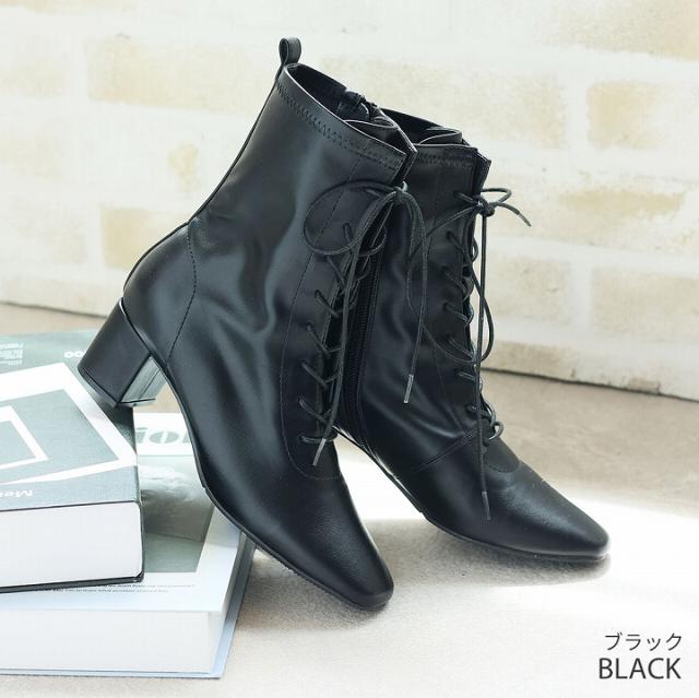 【全品10%OFFクーポン】 ブーツ レディース 秋新作 ショートブーツ 袴ブーツ ブーツ レディース 秋新作 レースアップ 卒業式 袴 ブーツ 卒業式 秋冬新作 チャンキーヒール ストレッチブーツ 痛くない 歩きやすい ブラック