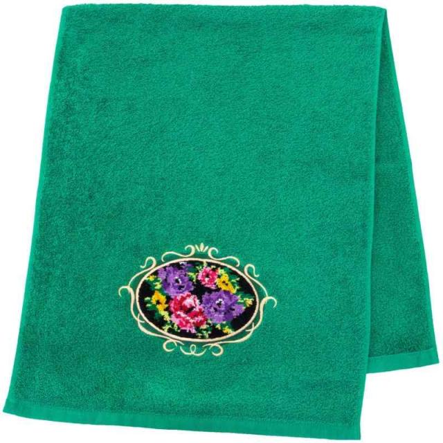 オカ(OKA) フェイスタオル グリーン 約33cm×80cm シェニールロゼ (エレガント ゴージャス)