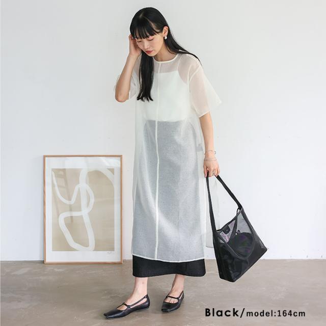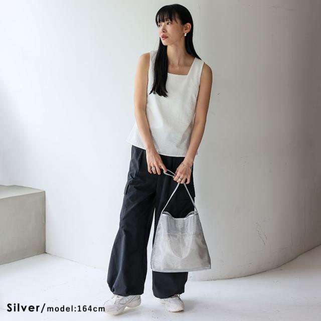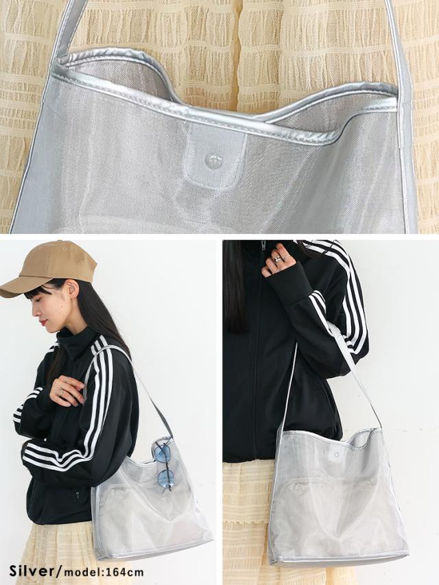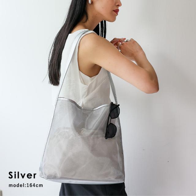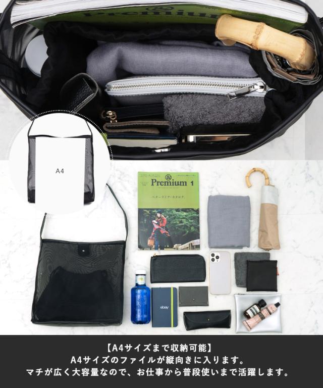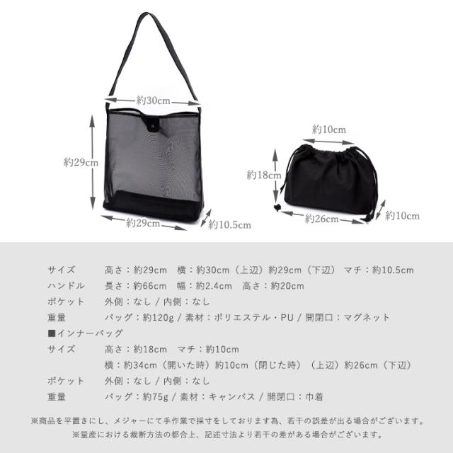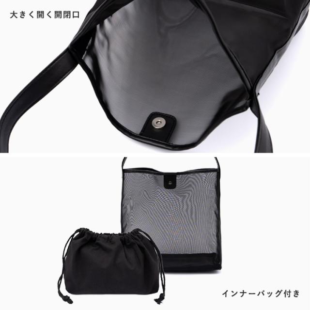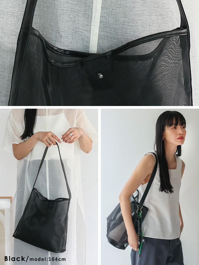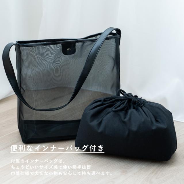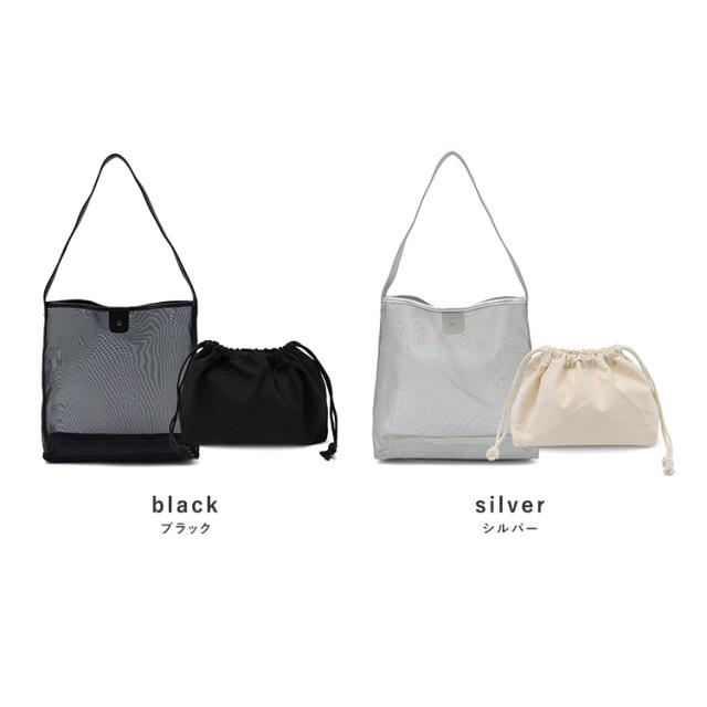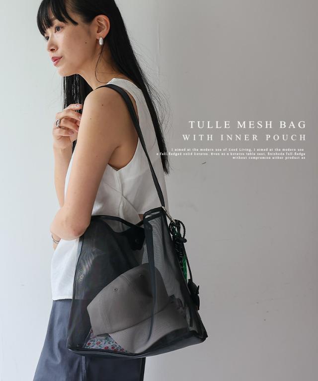 チュールメッシュ素材のインナーバッグ付き軽量バッグ