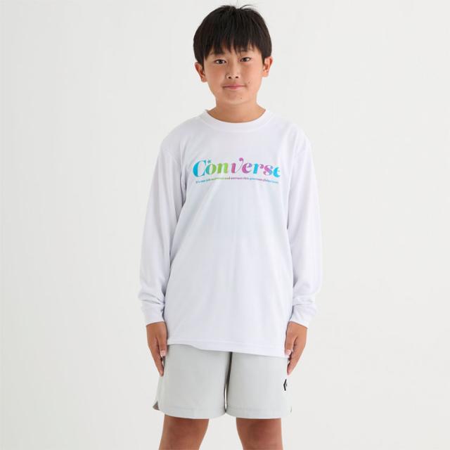 コンバース キッズ ジュニア 長袖 Tシャツ 130-160cm 子供服 CONVERSE プリントT バスケットボールウェア ロンT 吸汗速乾 子ども用 男の子 女の子 長そで トップス バスケシャツ スポーツウエア スポーツTシャツ こども 練習着 ブランド アパレル/CB452359L /CB452361L