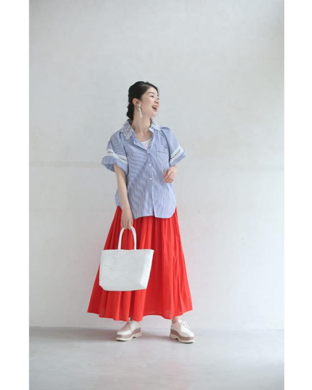 w61342ps 新作 新着 再入荷 CAWAII FRENCHPAVE フレンチパヴェ エレガント ベーシック カジュアル 可愛い かわいい カワイイ おしゃれ オシャレ お洒落 個性 個性的 定番 ベーシック 大人かわいい 大人可愛い 上品 女性らしい デザイン スタンダード ナチュラル きれいめ キレイめ シンプル フェミニン レディース レディースファッション 大人 ママ ミセス 30代 40代 50代 60代 首元に輝く ビジュー 花 襟 ポワン袖 ストライプ シャツ トップス 半袖 半そで ふんわり ボリューム袖 パフスリーブ 襟 レース ビジュー 装飾 華やか ストライプ 爽やか S M L フリーサイズ フリー 小さめ 小さいサイズ 低身長 痩せ ほっそり 小柄 細身 標準サイズ 大きめシルエット 大きい 大きめ ビッグシルエット ゆったり F サイズ自由 薄手 涼感性 涼しい ずずしい 春 夏 春服 春物 夏服 夏物 ブルー 青色 ストライプ柄 総柄 刺繍 レース 普段着 日常使い おでかけ リゾート 旅行 女子会 休日 デート イベント 買い物
