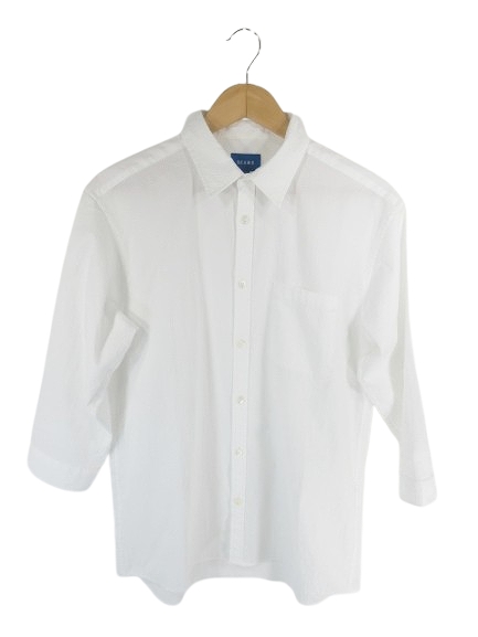 【中古】ビームス BEAMS シャツ カジュアル 七分袖 胸ポケット 無地 ホワイト Mサイズ QQQ メンズ