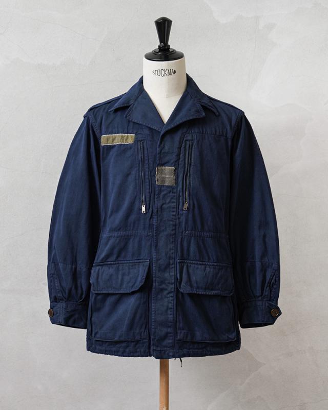 入手が近年非常に困難なフランス空軍で1964年に採用されたジャケットです。1960年から1970年代のデッドストックで入手の難しい約50年前のヴィンテージアイテムです。このM-64ジャケットは昨今人気の高いM-47ジャケットの後継モデルでF-2ジャケットの前モデルです。こちらは元々オリーブだったものをネイビーカラーにオーバーダイ(後染め)がされていますが、放出された後にヨーロッパ本国で製品染めが施されたアイテム。後染め特有の独特な雰囲気は、コーディネートによってはクラシカルな趣や、ラギットな印象も与えてくれる希少かつ万能な一枚です。