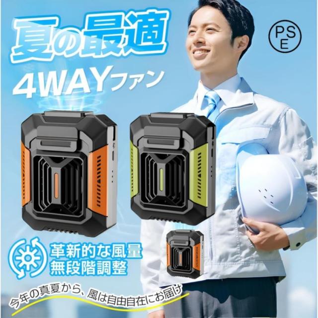 4WAY 腰掛けファン 携帯扇風機 腰掛け扇風機 首掛け 手持ち 強力 静音 軽量 小型扇風機 USB充電式 瞬間冷却 熱中症対策 ライト機能付き
