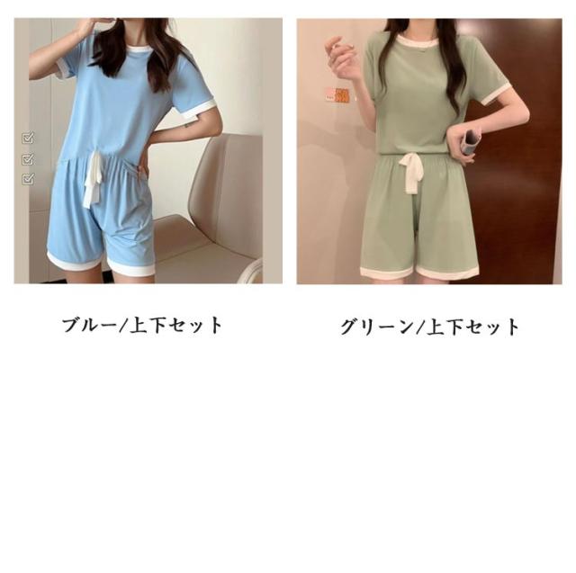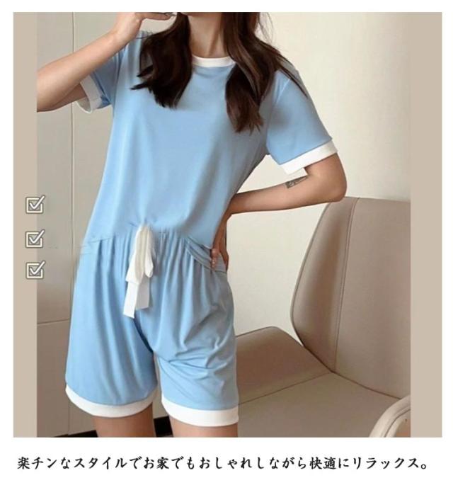ひんやり パジャマ 上下セット ルームウェア 部屋着 レディース 2点セット ショートパンツ 半袖tシャツ ルームウェア 冷感 ゆったり 体型カバー 接触冷感 寝間着 通気性 半袖 上下セット 涼しい 快適 春 夏 秋 大きいサイズ リラックスウェア 無地 シンプル 送料無料