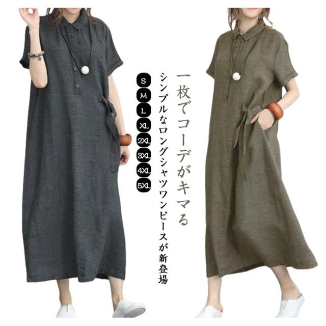 大人ワンピース 夏ワンピース レディース シャツワンピース シャツワンピース きれいめ 無地 シャツワンピース ワンピース 秋ワンピース 半袖ワンピース 春ワンピース ロングワンピース ワンピース Aライン通勤 入園式
