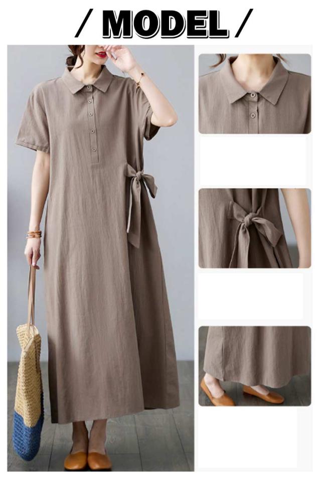 レディース シャツワンピース シャツワンピース 夏ワンピース シャツワンピース ワンピース 無地 きれいめ ワンピース 大人ワンピース 秋ワンピース 半袖ワンピース ロングワンピース 大きいサイズ Aライン通勤 入園式