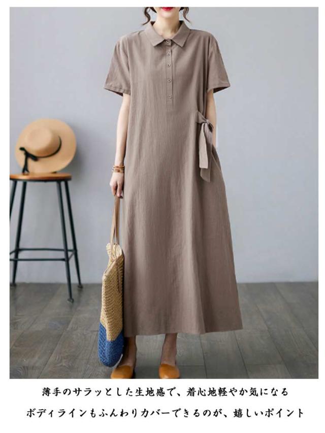 半袖ワンピース レディース シャツワンピース 夏ワンピース シャツワンピース 大人ワンピース 無地 きれいめ ワンピース ワンピース 秋ワンピース 春ワンピース ロングワンピース 大きいサイズ Aライン通勤 入園式