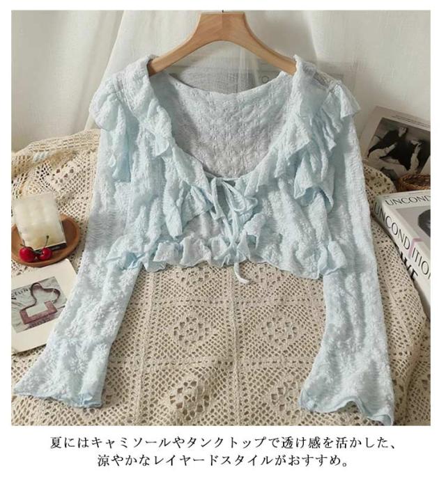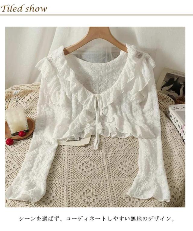 おしゃれ 可愛い カーディガン シンプル 夏 羽織もの ライトアウター 無地 サマー 薄手 優しい サマー きれいめ レディース レース 長袖 透け感 上品 体型カバー ボレロ レイヤード 重ね着 紫外線対策 通気性 春夏
