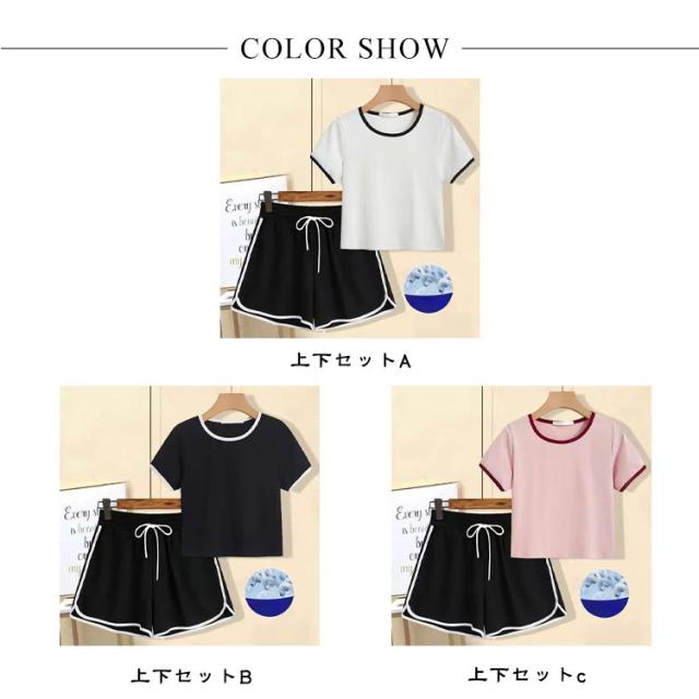 半袖トップス 上下セット ルームウェア 薄手 ショートパンツ セットアップ 半袖Tシャツ 部屋着 接触冷感 夏 レディース ショートパンツ スポーツウェア トップス ボトムス ゆったり 短パン 楽ちん おしゃれ