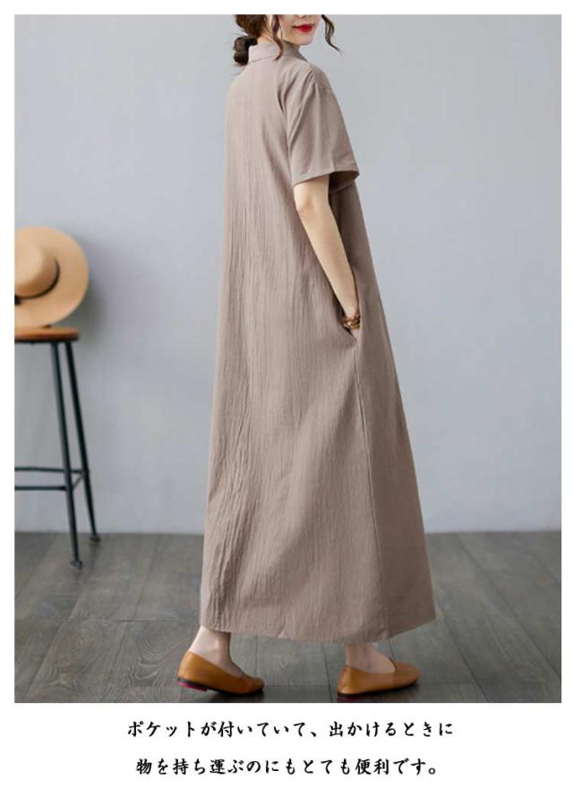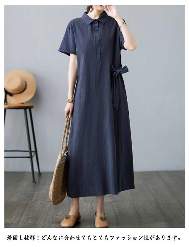 ワンピース 半袖ワンピース レディース ワンピース 夏ワンピース シャツワンピース 無地 きれいめ シャツワンピース 大人ワンピース 秋ワンピース 春ワンピース ロングワンピース 大きいサイズ Aライン通勤 入園式