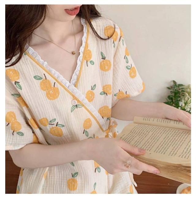夏用 甚平 レディース 大人 パジャマ 甚平 大人用 女性用 女の子 ルームウェア 上下セット 可愛い 蜜柑柄 ルームウェア 夏祭り 浴衣柄