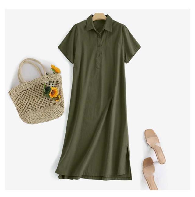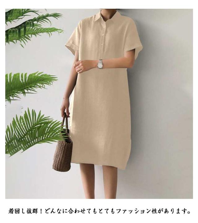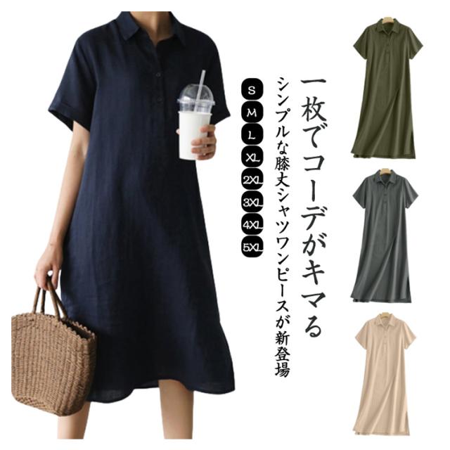 シャツワンピース レディース 半袖ワンピース シャツワンピース 夏ワンピース きれいめ ワンピース 無地 ワンピース 大人ワンピース 秋ワンピース 春ワンピース ロングワンピース 大きいサイズ Aライン通勤 入園式
