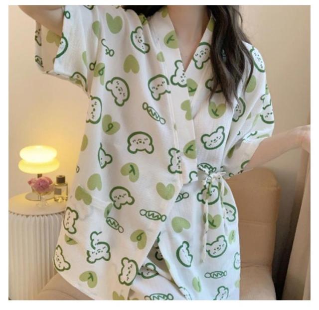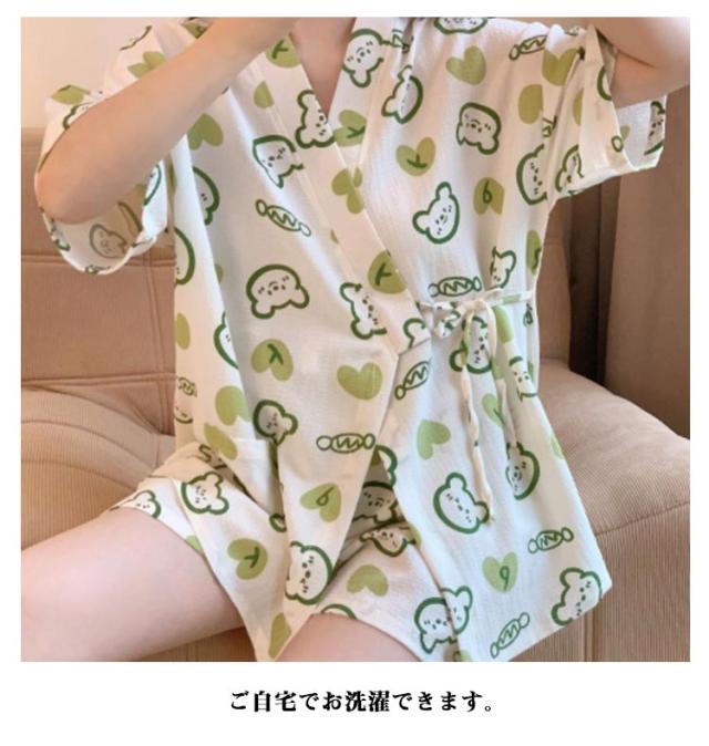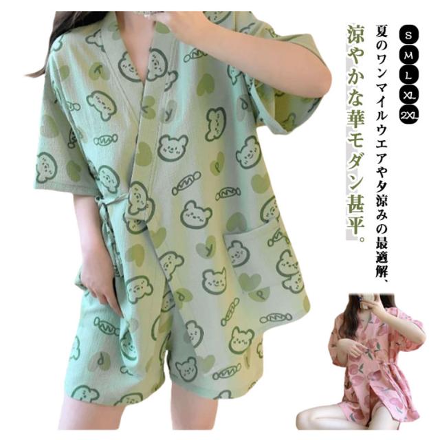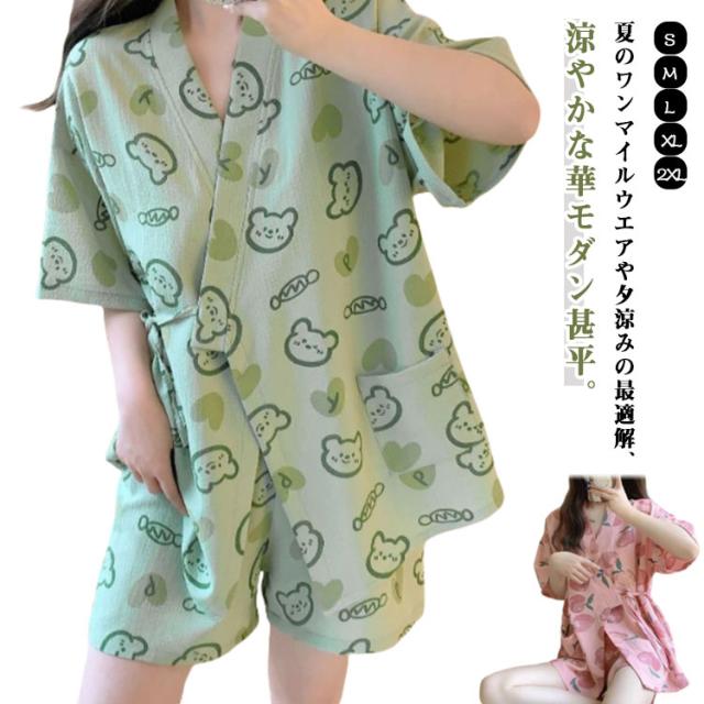 甚平 モモ柄 大人 女性用 カトゥーン柄 甚平 パジャマ 夏用 ルームウェア 大人用 クマ柄 女の子 ルームウェア 上下セット 夏 夏祭り 浴衣式
