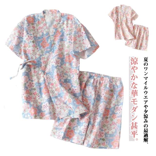 甚平 ルームウェア 大人 パジャマ 和柄 夏用 大人用 上下セット 女性用 女の子 ルームウェア 夏 花柄 可愛い コットン混 和柄 夏祭り 甚平 浴衣柄