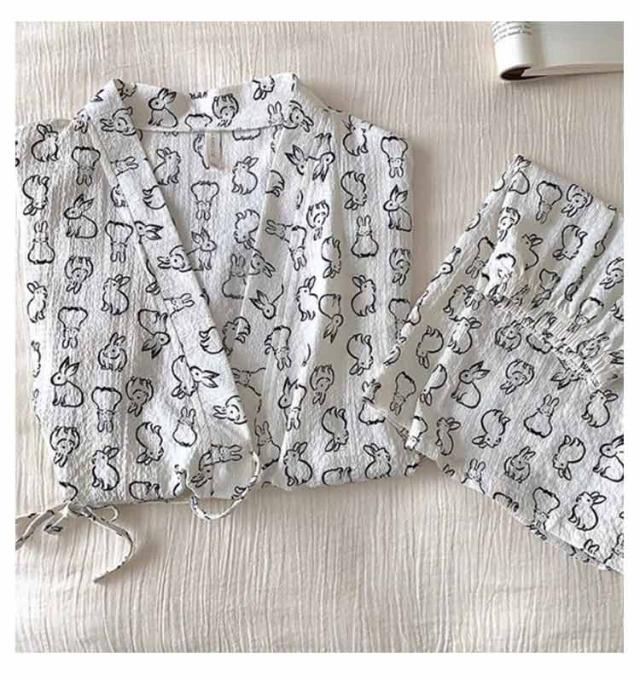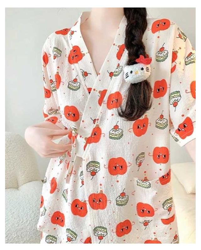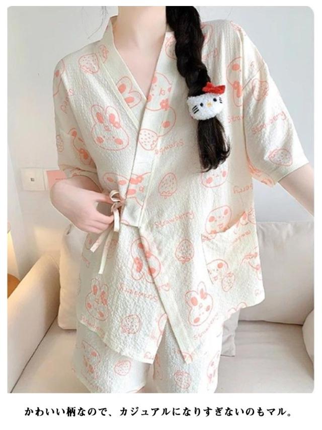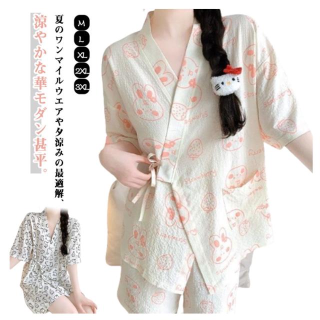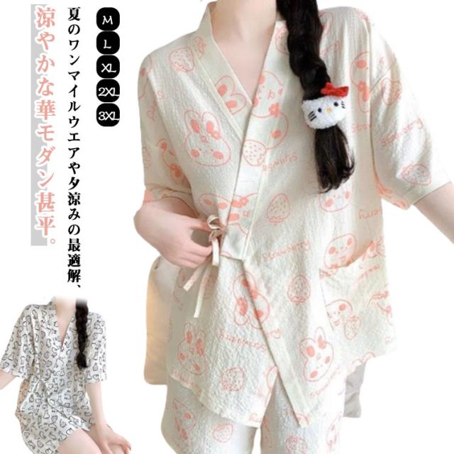 大人 パジャマ 甚平 夏用 カトゥーン柄 ウサギ柄 レディース 大人用 ルームウェア 女の子 女性用 リンゴ柄 甚平 ルームウェア 夏 夏祭り 浴衣式