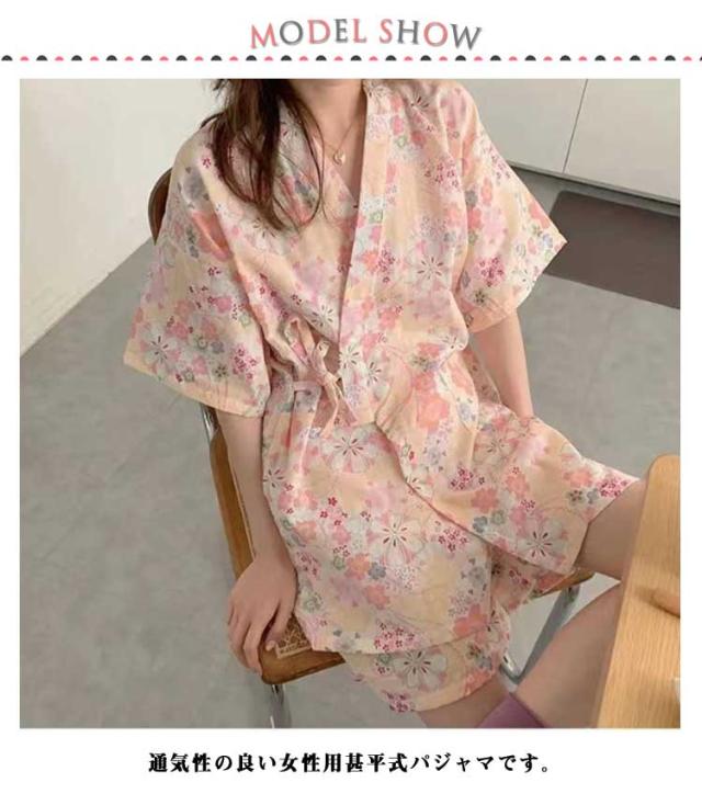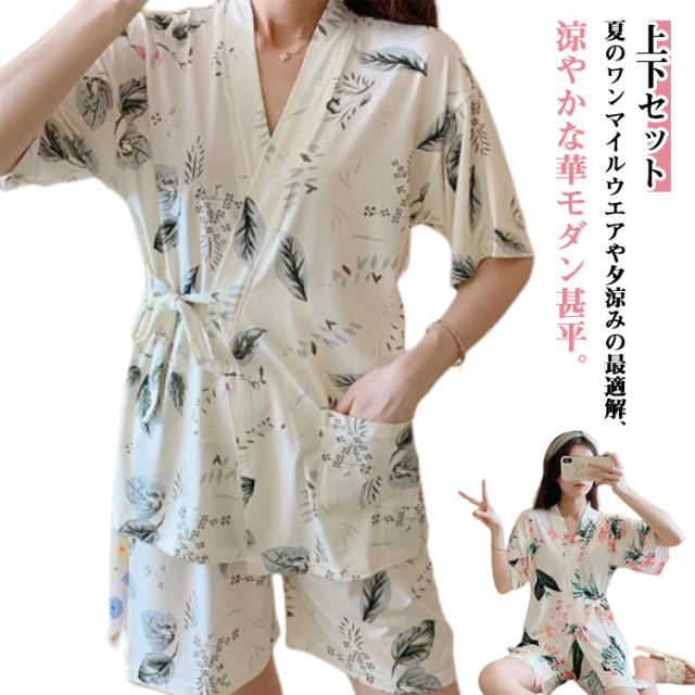 和柄 甚平 甚平 大人用 夏用 女性用 ルームウェア パジャマ 大人 女の子 ルームウェア 上下セット 花柄 葉 オレンジ 和柄 夏 夏祭り 浴衣柄