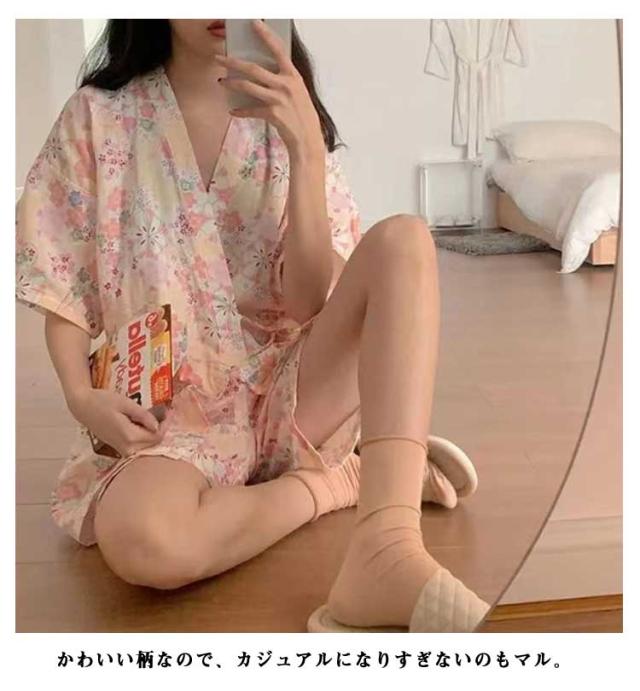 | 夏のワンマイルウエアや夕涼みの最適解、涼やかな華モダン甚平。 通気性の良い女性用甚平式パジャマです。 かわいい柄なので、カジュアルになりすぎないのもマル。 動きやすくてゆったりした着心地は、部屋着や旅先のウエアとしても大活躍。 ご自宅でお洗濯できます。 | |
