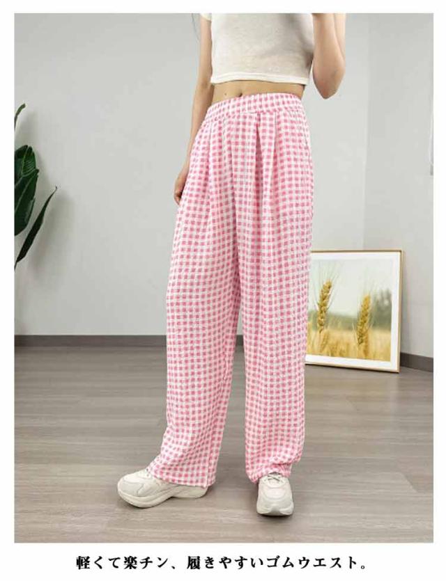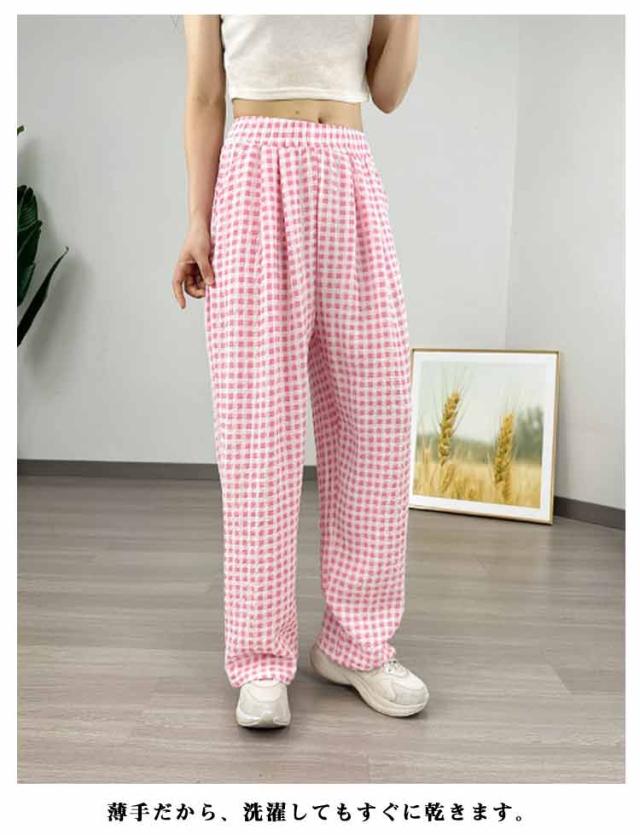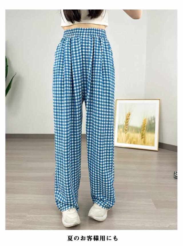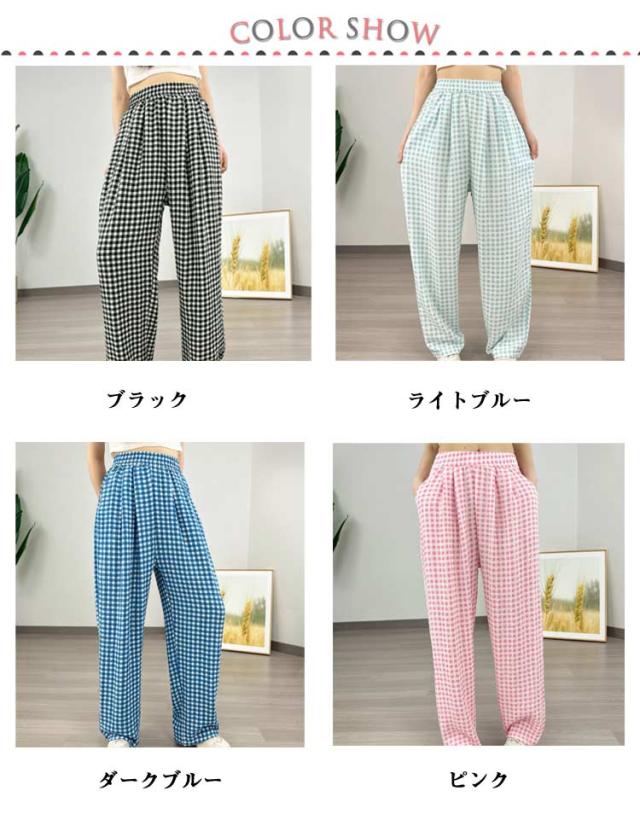 ルームウェア ロング丈 レディース チェック柄 ステテコ レディースルームパンツ ステテコ ルームパンツ ゆったり 部屋着 パジャマ リラックスパンツ 夏