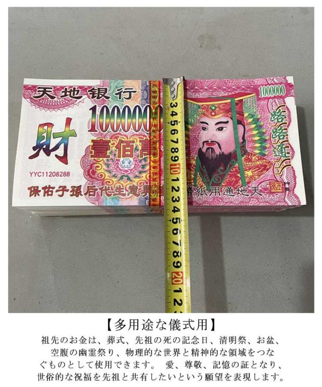 送料無料 中国紙幣 祖先のお金 28×14 送料無料 翡翠 地獄ノート 皇帝 ロールプレイ用 燃やす紙幣 お焚き上げ用 天地銀行紙銭 ゴーストマネー ジョス紙 祖先崇拝用 通貨の犠牲品 百万 計200枚 焼銭 冥銭 棺桶