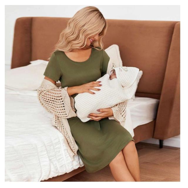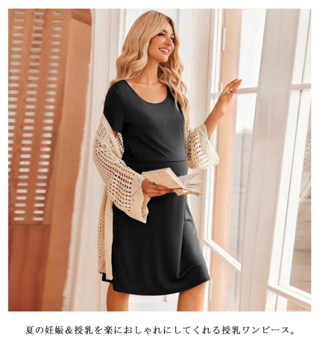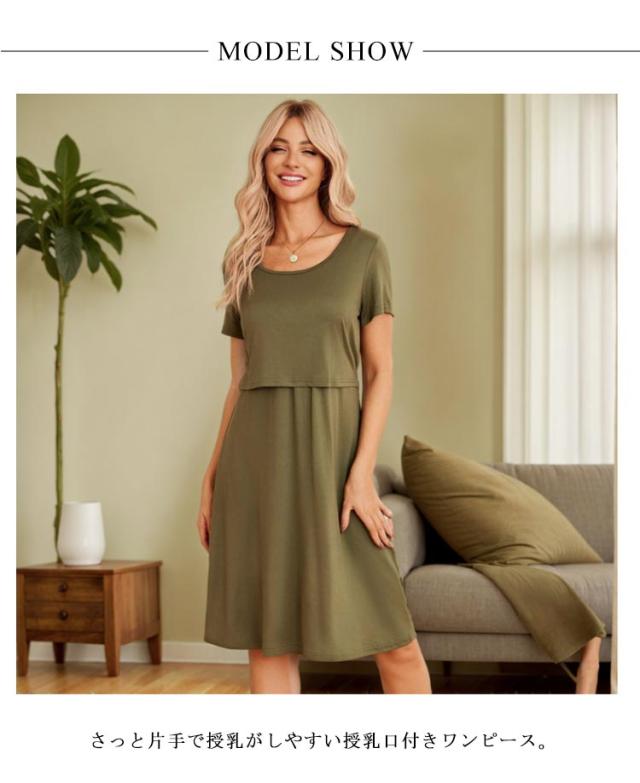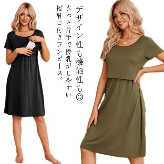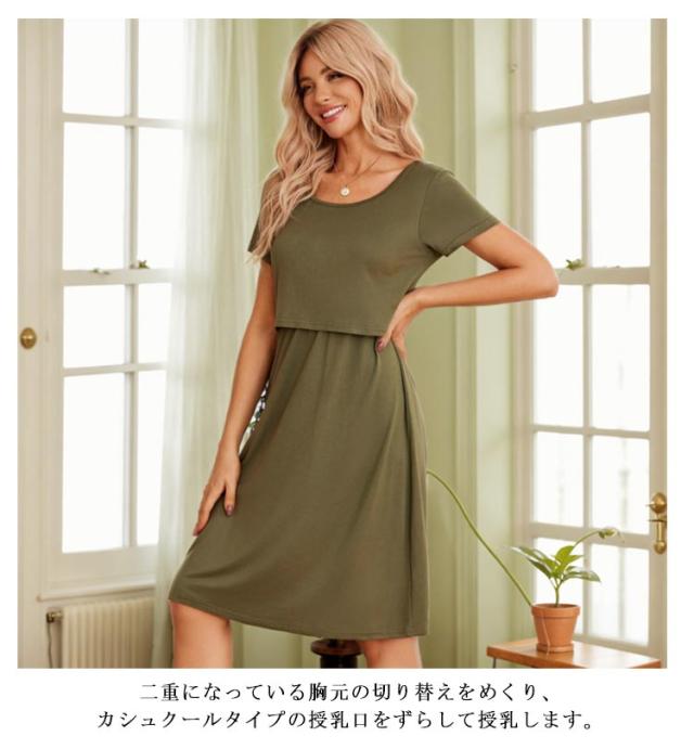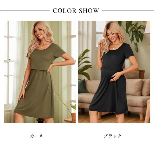 妊婦服 チュニック 膝丈 授乳口付き 授乳ワンピース ワンピース 授乳服 妊婦 授乳服 重ね着風 ワンピース 産前産後 半袖 ワンピース ミディアムワンピース レディース uネック