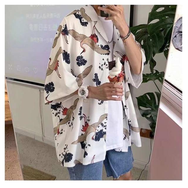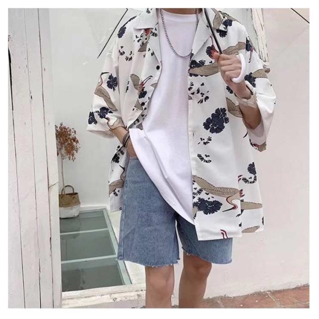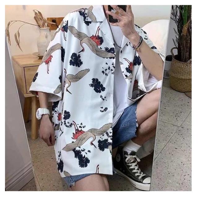 | M-3XL! 春夏の鶴柄シャツ。 派手すぎないプリント総柄itemで着るだけでおしゃれ感抜群。 | |