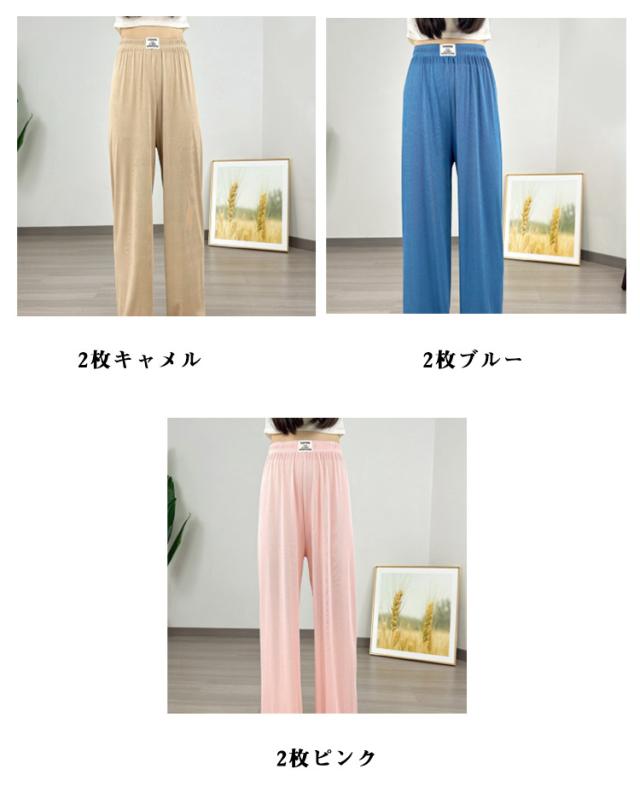 ロング丈 2枚セット レディースルームパンツ ステテコ レディース 部屋着 ルームパンツ 部屋着 ルームウェア ゆったり 夏 無地 リラックスパンツ パジャマ 2枚セット シンプル 涼しい ボトムス