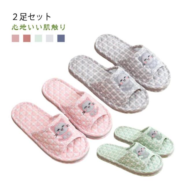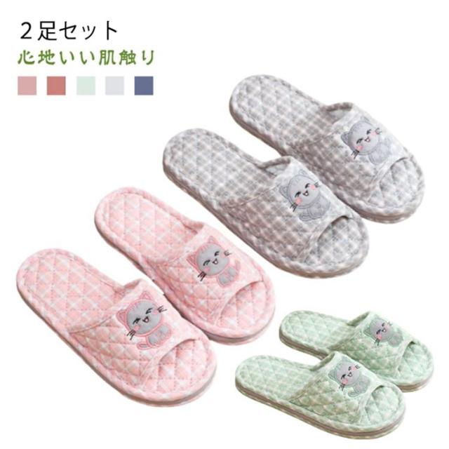 ルームシューズ コットン かわいい ルームスリッパ 洗える メンズ 2足セット 室内履き 綿 厚底 レディース 蒸れない 前開き 軽い 疲れない ウォッシャブル スリッパ 来客用 シンプル おしゃれ