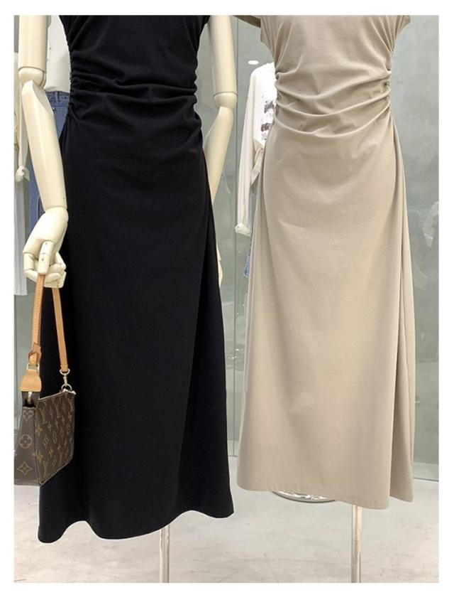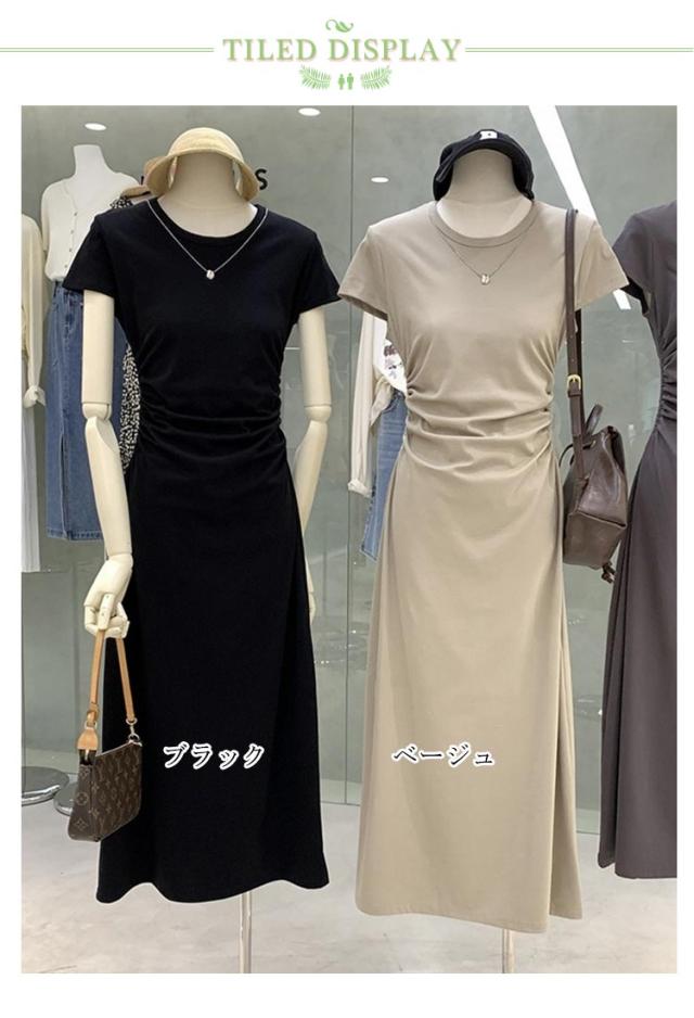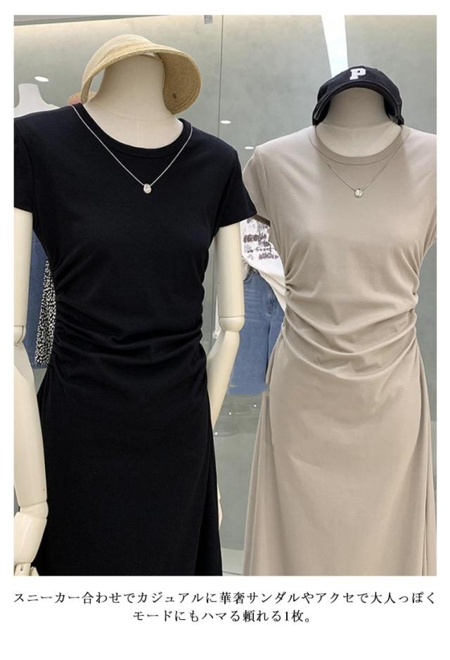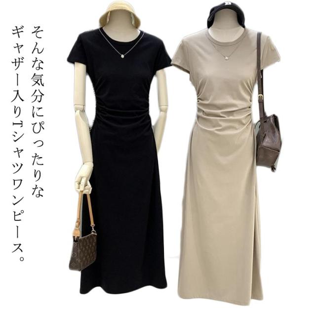 ワンピース ワンピース タイトワンピース レディース ロング 無地 tシャツ ワンピ 着痩せ タイト ロングワンピース 半袖 ロング丈 カジュアル サイドギャザー クルーネック Tシャツワンピ ウエストギャザー 大人 春