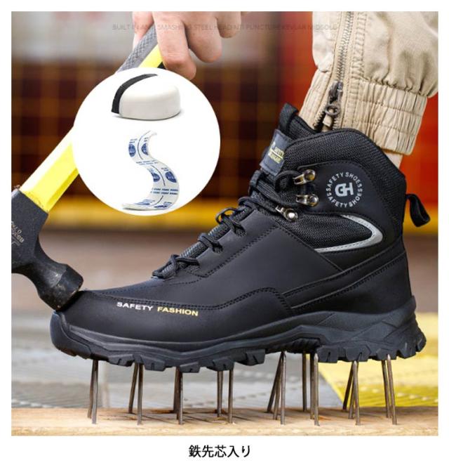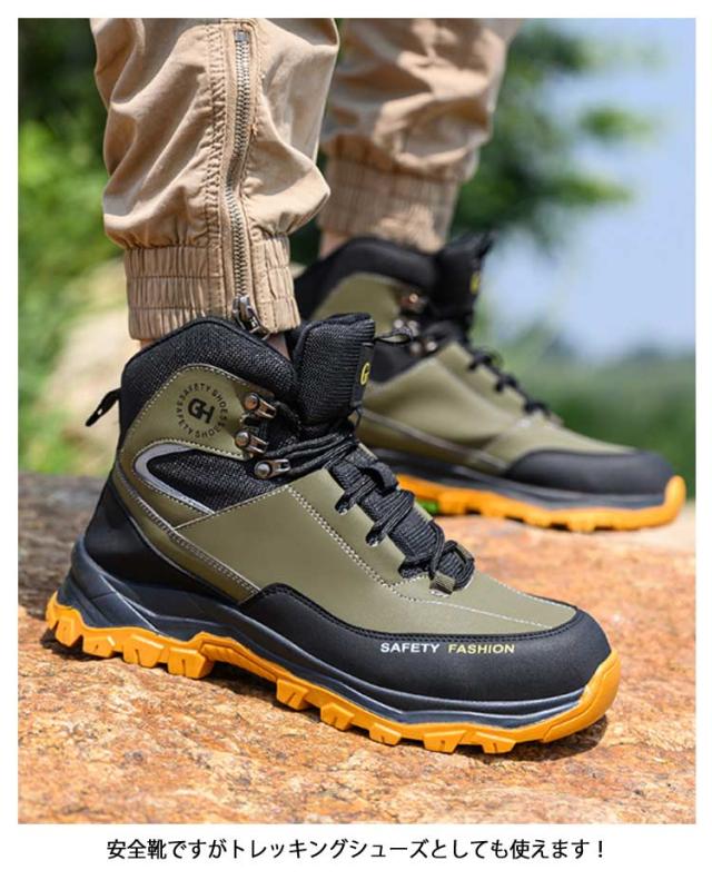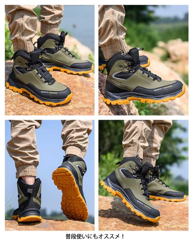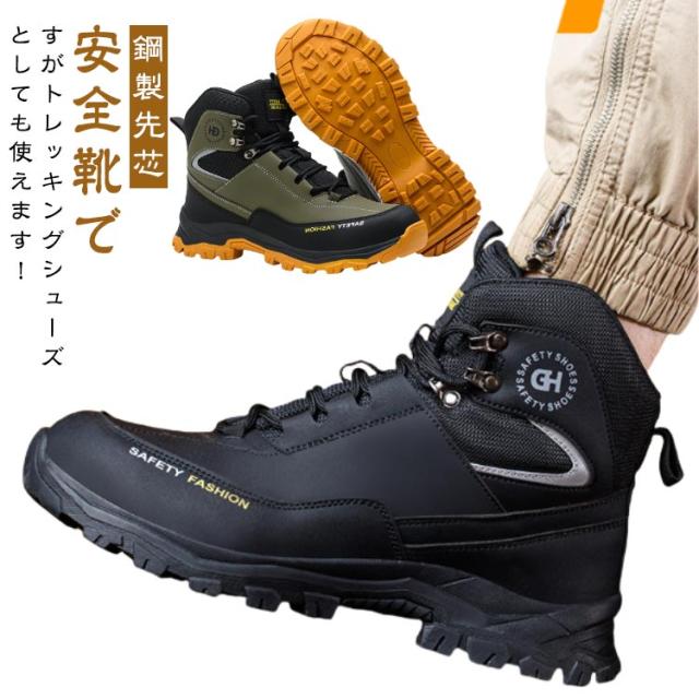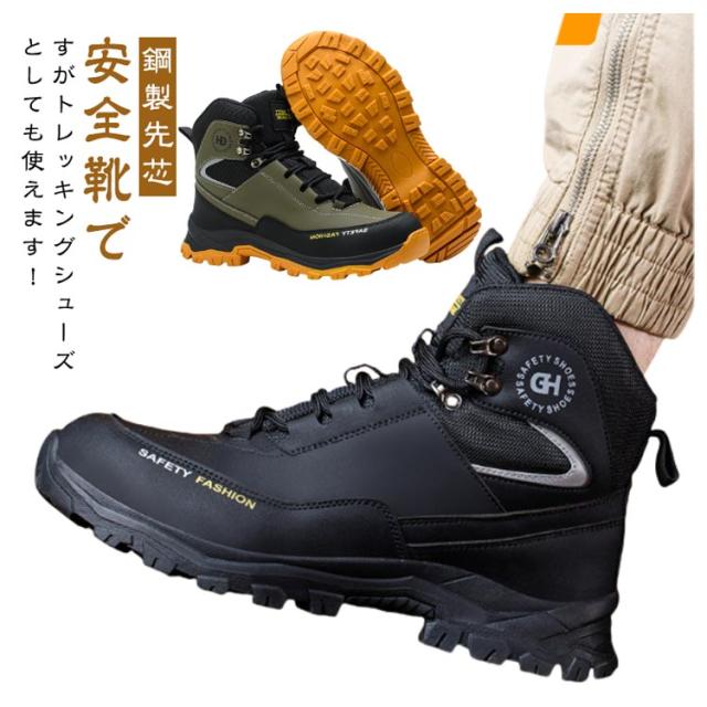 セーフティシューズ 安全靴 ハイカット 鋼製先芯 メンズ 作業靴 ミッドカット 撥水 男性 安全靴 登山 アウトドア 山歩き