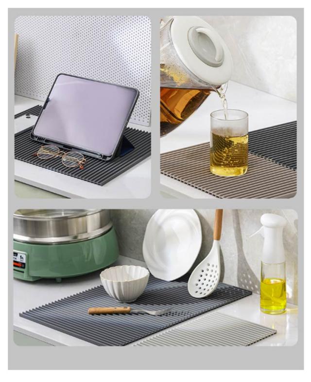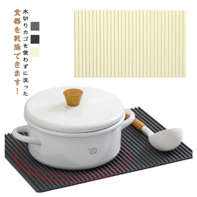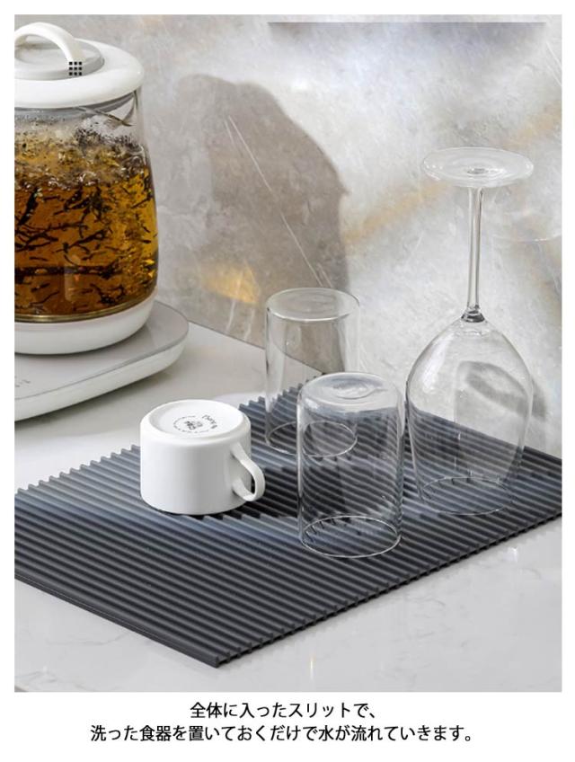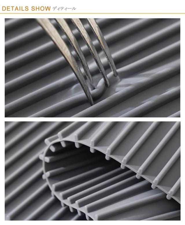 | ・水切りカゴを使わずに洗った食器を乾燥できます! ・全体に入ったスリットで、洗った食器を置いておくだけで水が流れていきます。 ・使わないときはコンパクトに収納できます。 ・鍋敷きやコースターなどにも使用できます。 | |