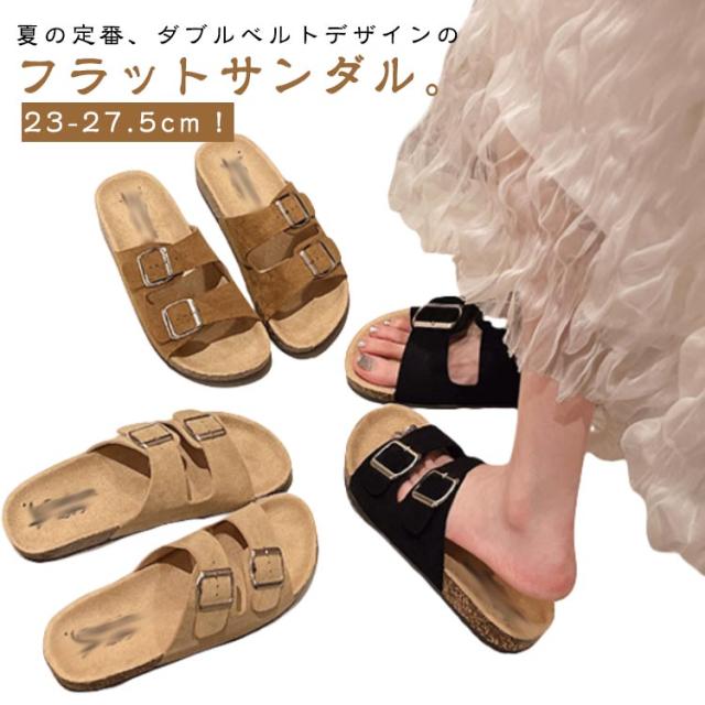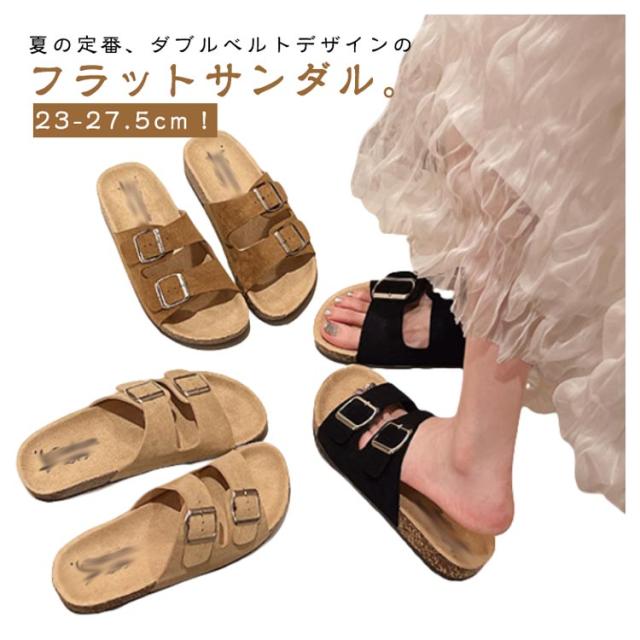 | 23-27.5cm!夏の定番、ダブルベルトデザインのフラットサンダル。 アッパーには風合いを生かしたスエード調レザーを使用し使い込むほどに味わいが増します。 柔らかなスエード調レザーで足馴染みが良く、長時間履いても疲れにくいのが魅力◎ 長時間履いても疲れにくいフラットソールなので、お出かけにもピッタリです。 | |