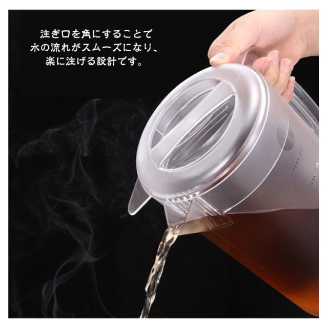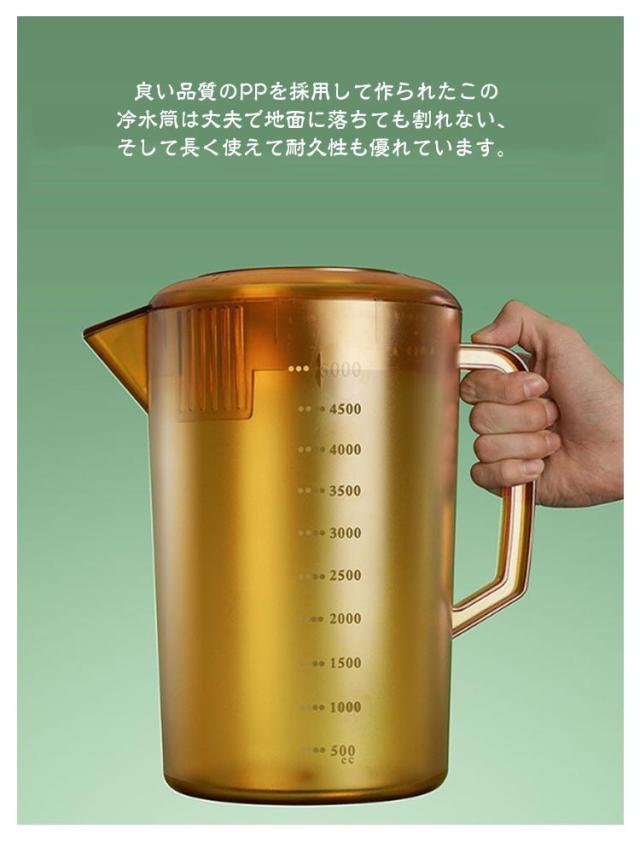 | 冷蔵庫に入れるのはおすすめです。大容量冷水ポット。 便利な目盛り付き♪ 注ぎ口を角にすることで水の流れがスムーズになり、楽に注げる設計です。 良い品質のPPを採用して作られたこの冷水筒は丈夫で地面に落ちても割れない、そして長く使えて耐久性も優れています。 大きい開き口、シンプル構造が、いちばん簡単に衛生管理出来ます。 大容量なので、夏場の麦茶作りにもおすすめです。 | |