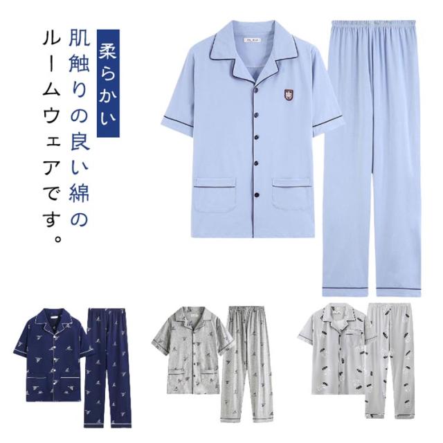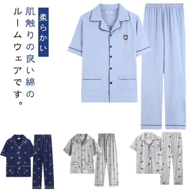 ゆったり 長ズボン 夏 ルームウェア パジャマ パジャマ 上下セット 前開き 部屋着 綿 大きいサイズ 春 通気 ナイトウェア 吸汗 半袖 肌に優しい 柔らかい 入院着 春夏秋 父の日 寝巻き リラックスウェア 送料無料
