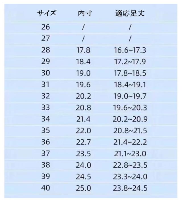 | サイズ | 28 29 30 31 32 33 34 35 36 37 38 39 40 |