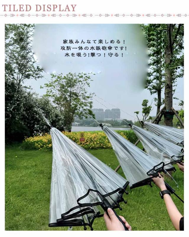 | 傘型水鉄砲。6-8メートル強力な射程。子どもも大人も大はしゃぎ!家族みんなて楽しめる!攻防一体の水鉄砲傘です! 水を吸う!撃つ!守る! 水鉄砲として使える傘。雨傘にも水鉄砲にもなる、実用的で楽しい! 最大飛距離は驚きの8M!引き出し式の動力でさらにパワフラ!スムーズに引き出せる。 水の補給しやすい。隠れた引き出じ式の水タング。安全な挟み込み防止設計で大容量で長時間遊べ、楽しさが途切れません。 1本で2役!厚手の透明な雨傘 雨の日も水を漏らさすしっかりガード 遊べる雨傘は他にはない魅力! | |