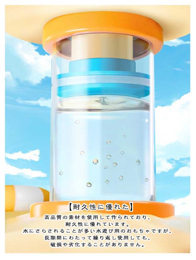 | 花火のようなデザインが特徴の「花火 水鉄砲 ウォーターガン」は、夏の水遊びを一層楽しくします。 【花火のような水鉄砲】この水鉄砲は、超強力な性能を備えており、水を花火のように勢いよく撃ち出します。夏の定番の水遊びに最適なおもちゃで、水ピストルとしての威力は子供から大人まで楽しめます。 【耐久性に優れた】高品質の素材を使用して作られており、耐久性に優れています。水にさらされることが多い水遊び用のおもちゃですが、長期間にわたって繰り返し使用しても、破損や劣化することがありません。 【使い勝手抜群】大きさで、持ちやすく使い勝手が抜群です。先を水の中に入れ、レバーを引いて水を得てから、レバーを押して水を噴霧します。 子供も大人も手に馴染みやすく、快適に水遊びを楽しむことができます。 【親子で楽しめる】この水鉄砲は軽量でコンパクトで、触り心地が良いので、お子様が握りやすくなっています。 プールとビーチに行って、すぐに暑さを吹き飛ばしましょう!親子ゲームとしても最適なこの水鉄砲は、家族みんなで一緒に楽しめるストリームマシンです。暑い今年の夏の外遊びにぴったり! 【多様なシーンで活躍する】この水鉄砲は、様々なシーンで活躍します。バスタブ、ビーチ、スイミングプール、公園、学校などで大成功を収めることでしょう。暑さ対策としても最適で、涼しさを取り戻すことができます。 | |