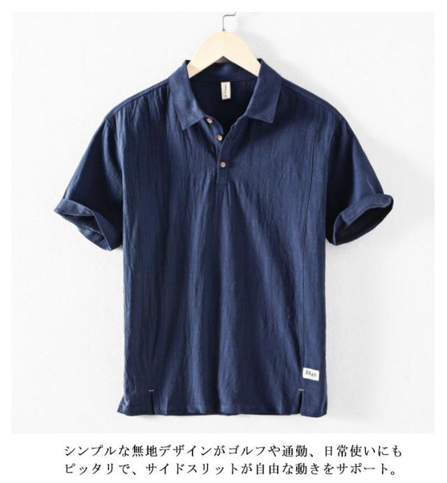 麻 メンズ ポロシャツ サイドスリット トップス 夏 無地 涼しい 通勤 薄手 綿麻シャツ 半袖ポロ コットン 綿麻 夏服 リネンシャツ リネン ゴルフシャツ ゴルフ 綿麻 シンプル 冷感 清涼 中華風 父の日 ギフト プレゼント