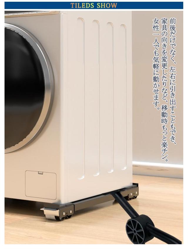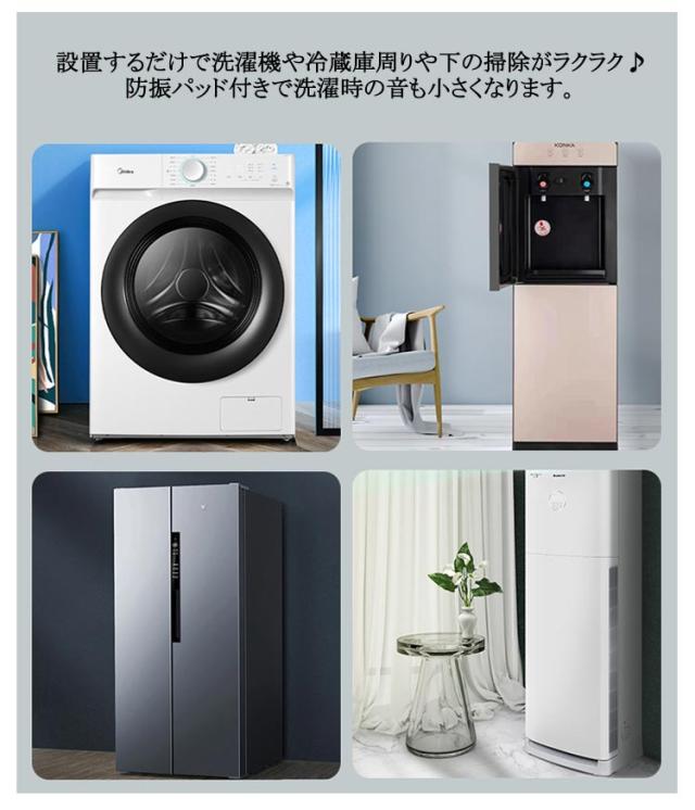 360度回転 冷蔵庫 洗濯機 冷蔵庫 360度回転 キャスター 調節可能 360度回転 台 2個セット 置き台 かさ上げ台 伸縮式 長さ調節 洗濯機スライド台 ドラム式洗濯機対応 ランドリーラック 家具 移動 滑り止めマット 引越し 多機能 ランドリーラック