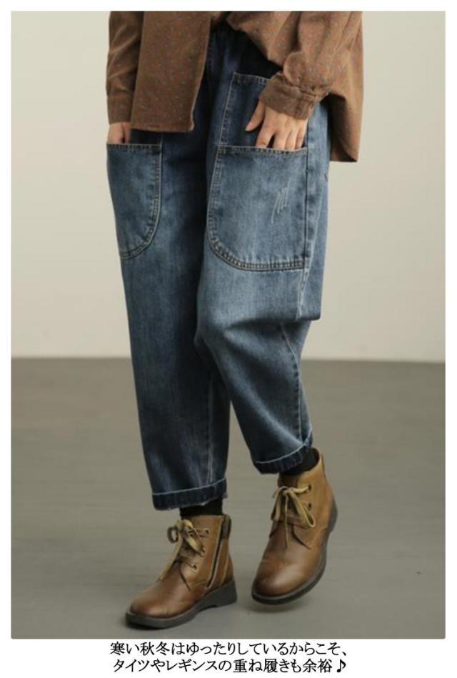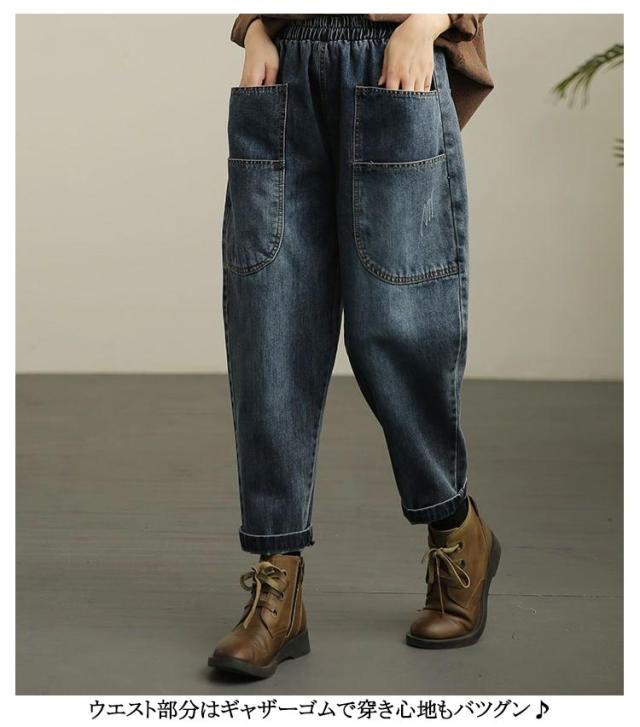 パンツ ワイドパンツ サルエル レディース デニムパンツ 体型カバー デニム ゆったり サルエル サルエル デニムサルエルパンツ 美脚 コクーンコクーン ウエストゴム サルエルパンツ 薄手 ボトムス 大きいサイズ 森ガール 個性派 カジュアル