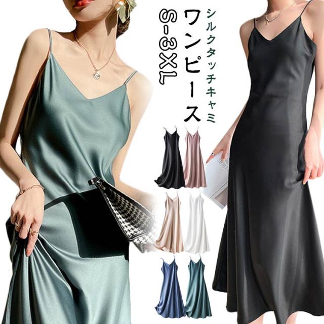 サテン風 ワンピース キャミソール インナー レディース インナーワンピース ワンピース キャミワンピ 無地 Aライン ペチコート キャミソール ロング丈 ノースリーブ 重ね着 光沢 春 夏 着痩せ 大きいサイズ キャミソール 可愛い お洒落 通勤 OL オシャレ