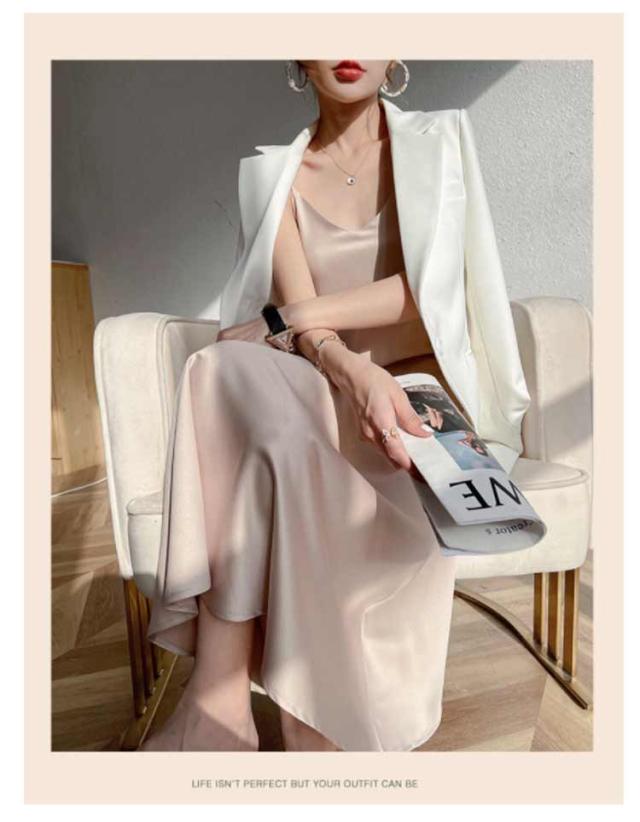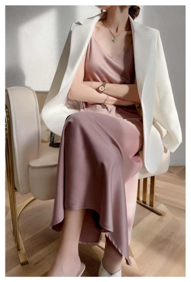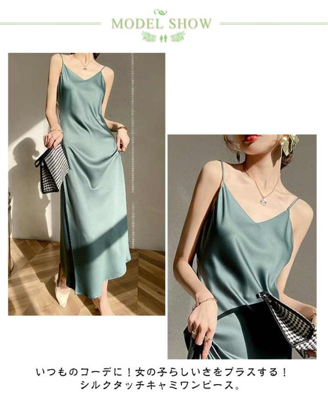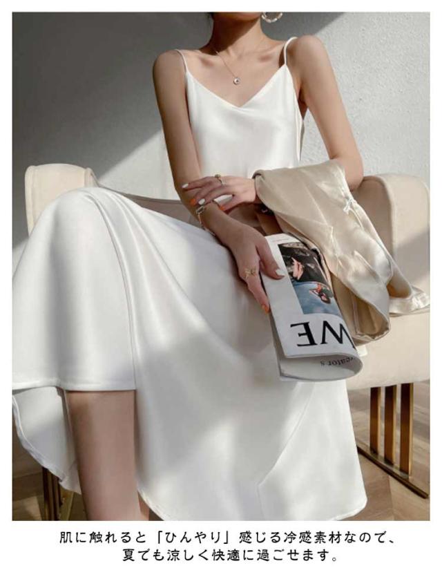| いつものコーデに!女の子らしいさをプラスする!シルクタッチキャミワンピース。 さらさらとした滑らかなサテン調素材で仕立てて、ストレスフリーの着心地です。 肌に触れると「ひんやり」感じる冷感素材なので、 夏でも涼しく快適に過ごせます。 一枚着としてはもちろん、ジャケットや羽織アイテムのインナーとしても活躍する。 | |