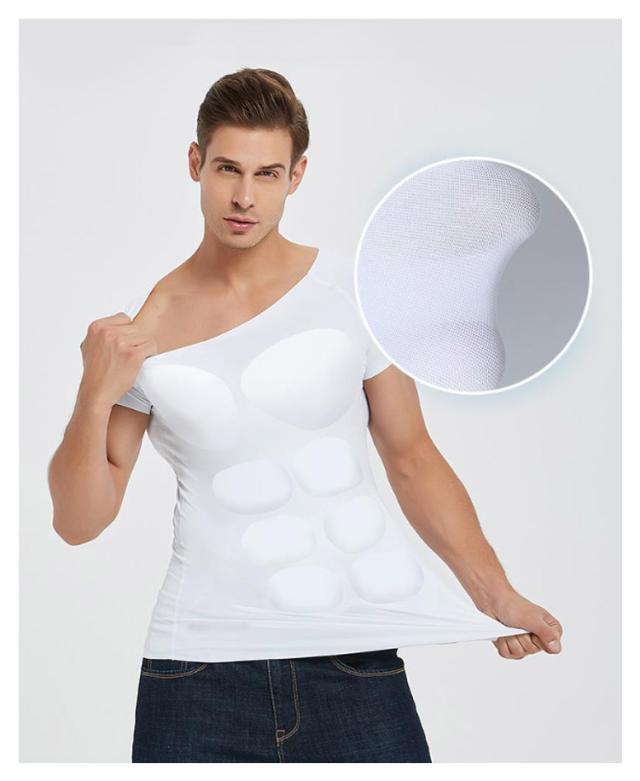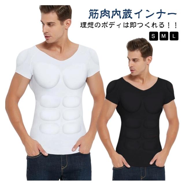 S マッチョスーツ 大胸筋 シームレス 筋肉Tシャツ 腹筋タイプ シークレット 体型補整 通気 マッチョインナー マッチョインナー 筋肉内蔵インナー Tシャツ M 半袖 L XL ブラック ホワイト ポリアミド スパンデックス