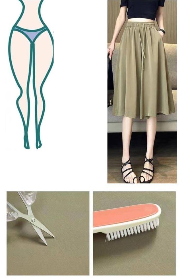 | サラっと涼しい♪ 軽やか美シルエットの七分丈ガウチョパンツ! ひんやりと冷たい、滑らかな肌触りのサラてろ生地で涼しく過ごせます ボディラインを拾わないワイドシルエット。下半身をすっぽり包み込み、気になる部分の体型カバーにも役立ちそう。 ウエストはゴム仕様に仕上げ、お腹周りの窮屈感を軽減したデザイン。 | |
