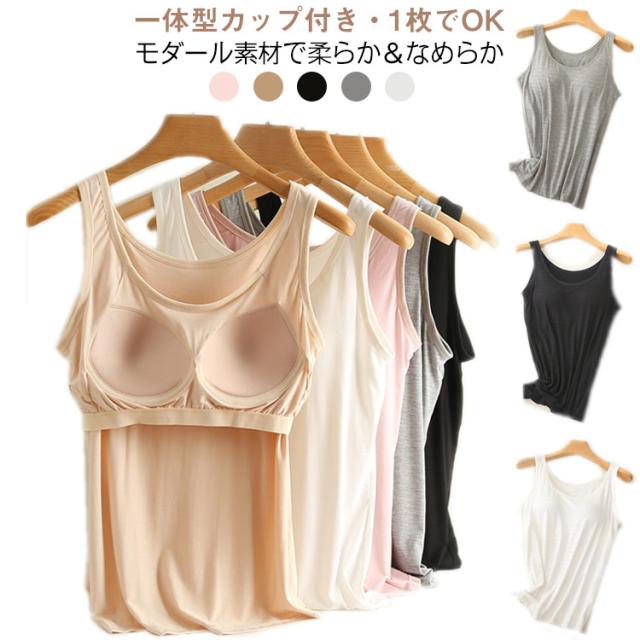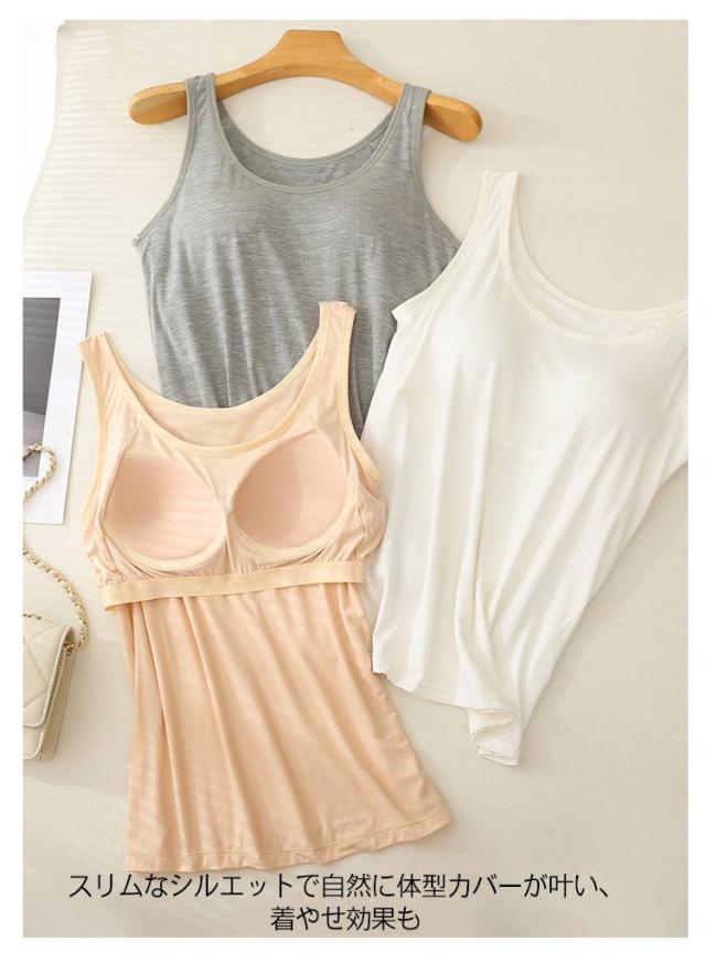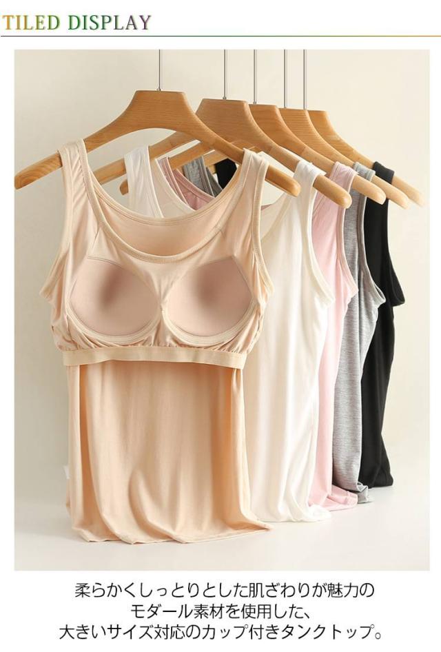 キャミソール モダール パッド付きキャミソール カップ付きタンクトップ 丸首 大きいサイズ タンクトップ ルームウエア 可愛い 部屋着 カップ付きタンクトップ 無地 トップス インナー 締め付け感なし 着やせ インナー 春夏