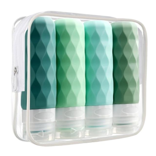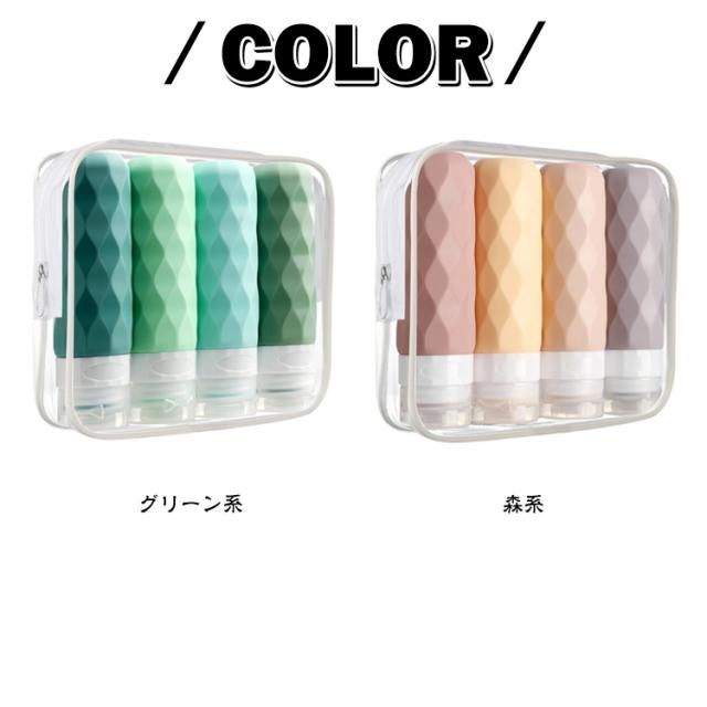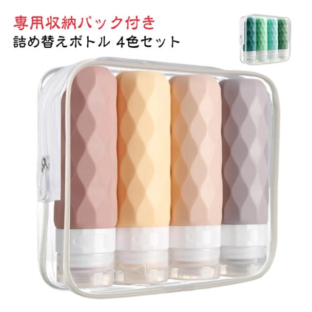 詰め替えボトル 【4色セット 詰め替 化粧水 おしゃれ 旅行用シャンプーボトル シリコン 携帯便利 詰め替え容器 【4色セット 専用収納パック付き】 漏れない 90ml 旅行用 出張用 飛行機可 海外旅行 収納ポーチ 持ち運び