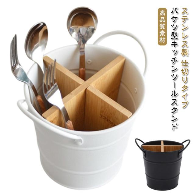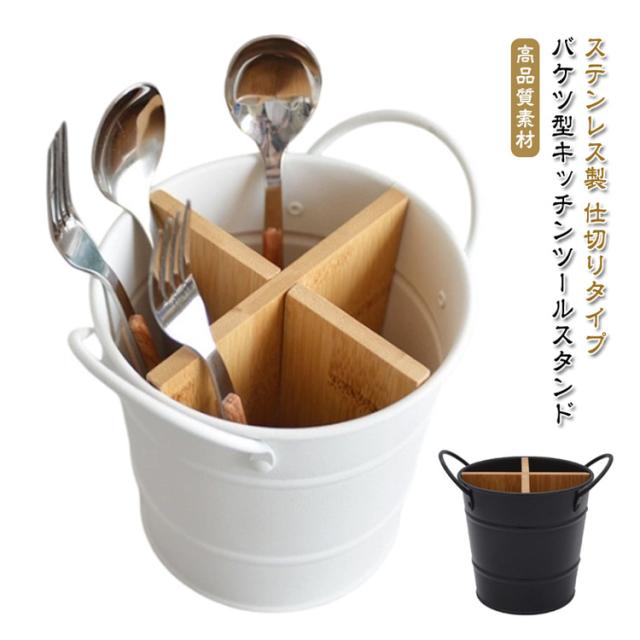 ナイフ バケツ型 箸 調理器具 木 おしゃれ ステンレス カトラリースタンド 竹 カトラリーケース キッチンツールスタンド カトラリーホルダー 水切り 大容量 箸立て スプーン フォーク 箸立て 収納 バケツ キッチン 台所 箸ラック 箸入れ はし